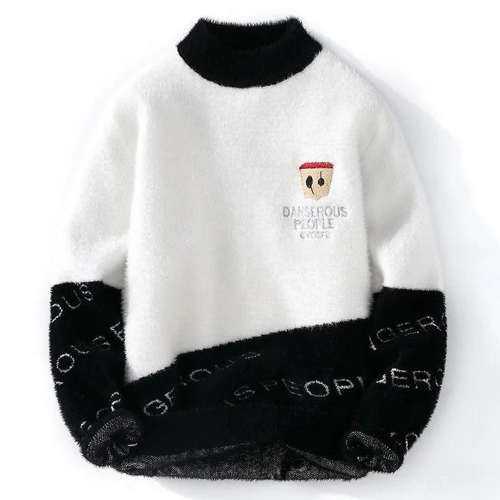 Men's Winter Sweaters Fashionable 100% Wool Knitted Pullover Breathable Front Logo Design Warm Winter