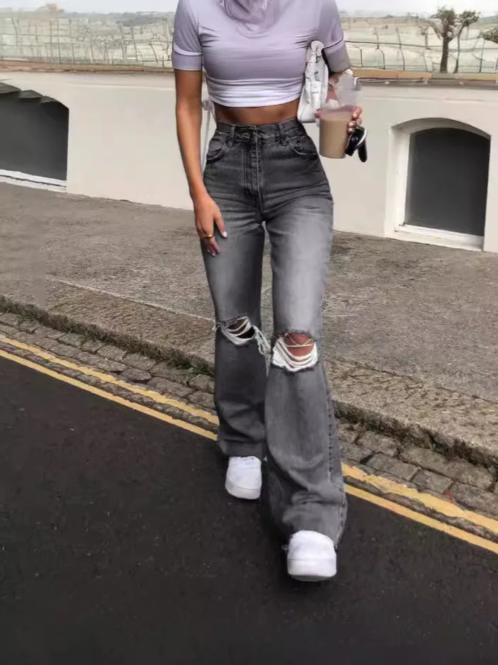 Women's High Street Style Vintage Baggy Denim Pants Breathable Eco-Friendly Straight Loose Fit Jeans Custom Logo Summer Pencil