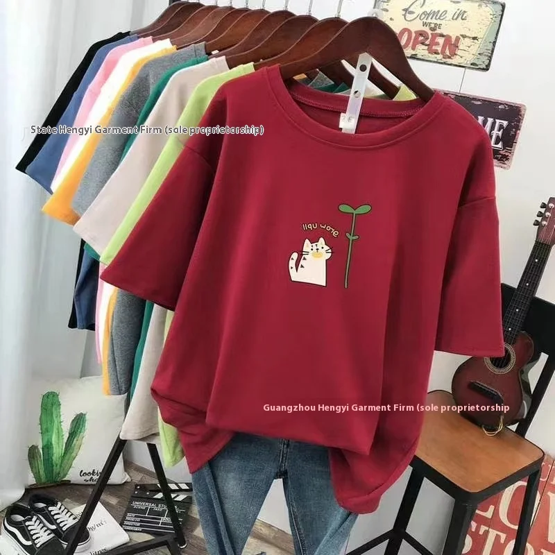 Women's Casual T-Shirt New Short Sleeve Summer Style Solid Knitted Anti-Pilling O-Neck 180g Wholesale In-Stock