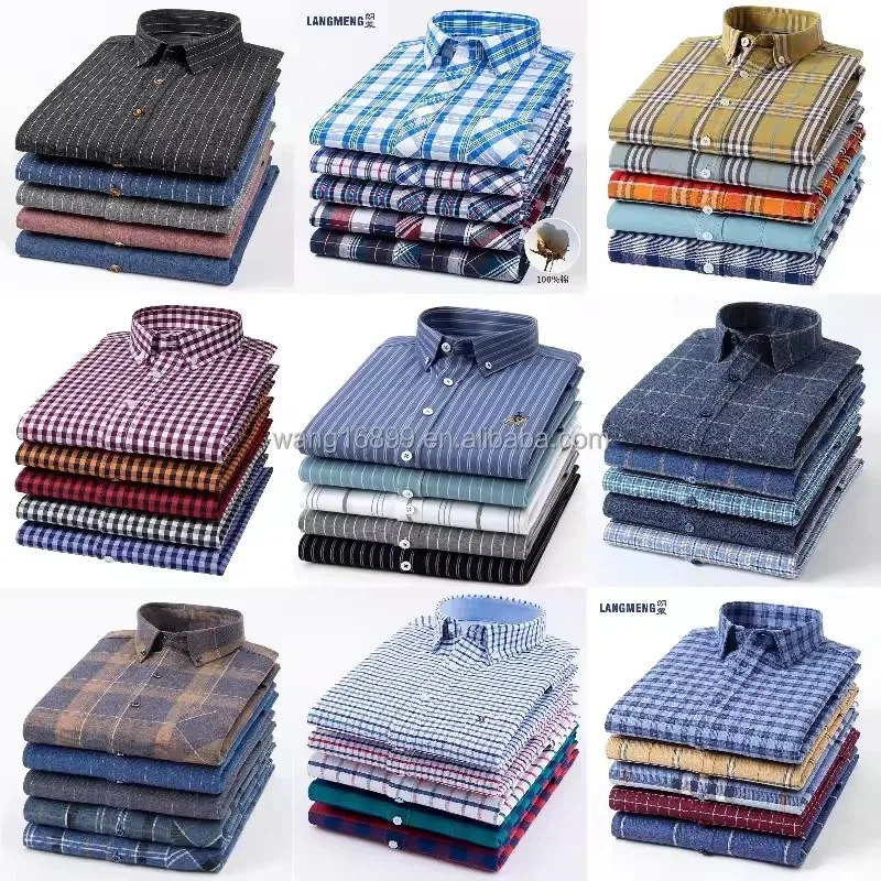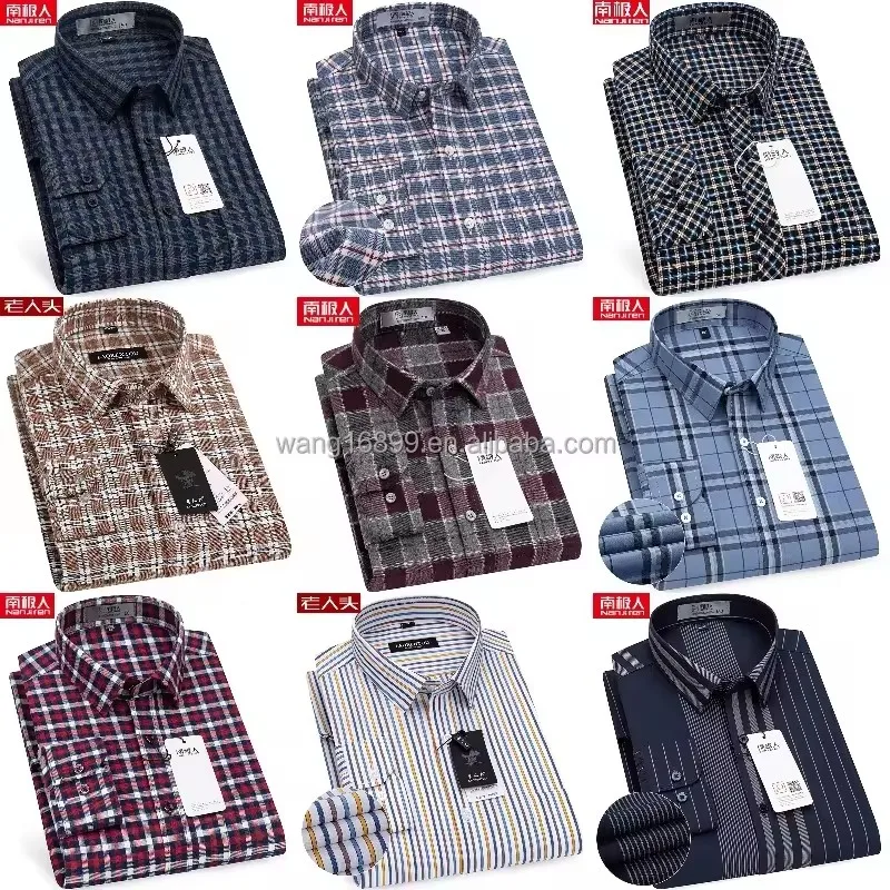 Men's Korean Version Business Dress Shirt 100% Cotton Excellent Striped Design Solid Casual Style Long Sleeve Slim Fit Winter