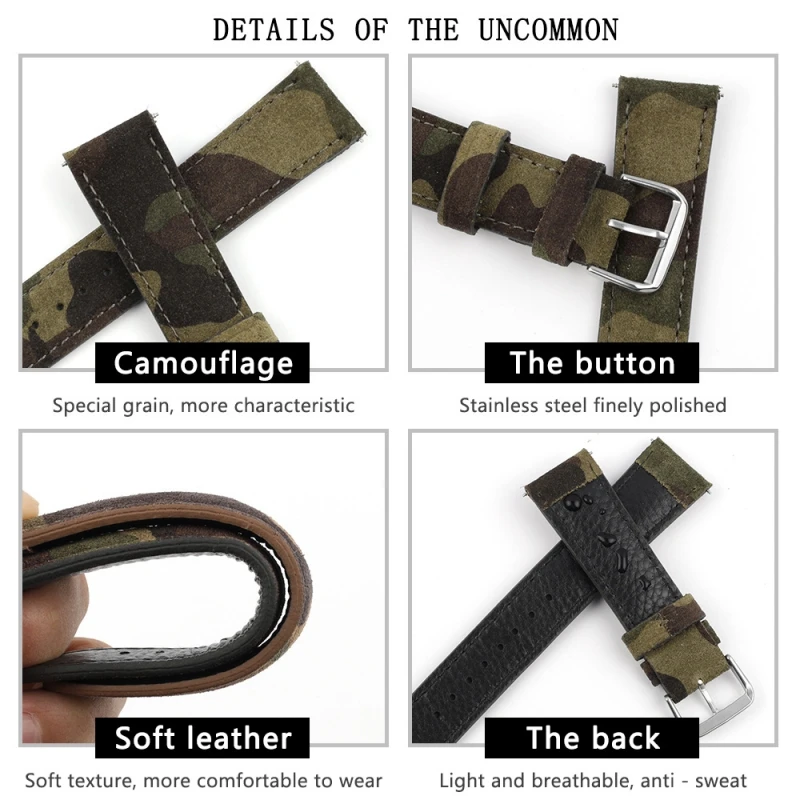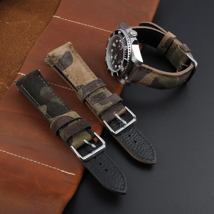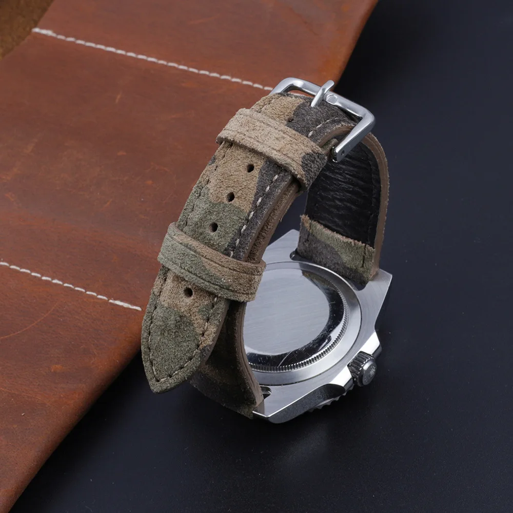 OEM/ODM Camouflage Suede and Calf Premium Material Genuine Leather Strap Durable and Stylish Customizable Size for Watch