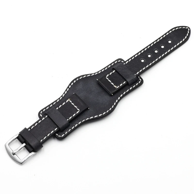 New Style Genuine Leather Watch Straps Cable Stitching Universal Luxury Leather Handmade Dyed Customized Size for Men