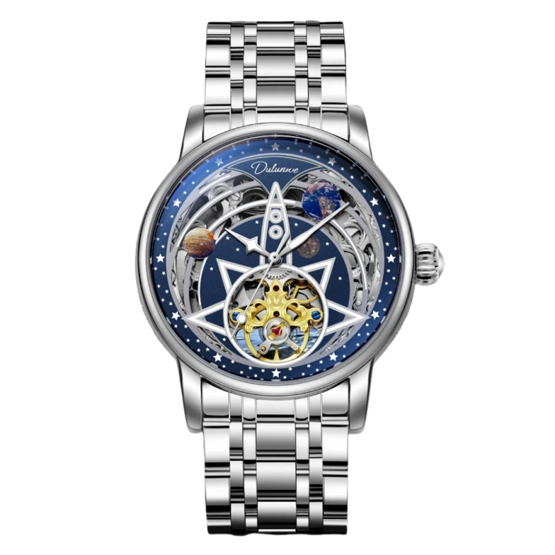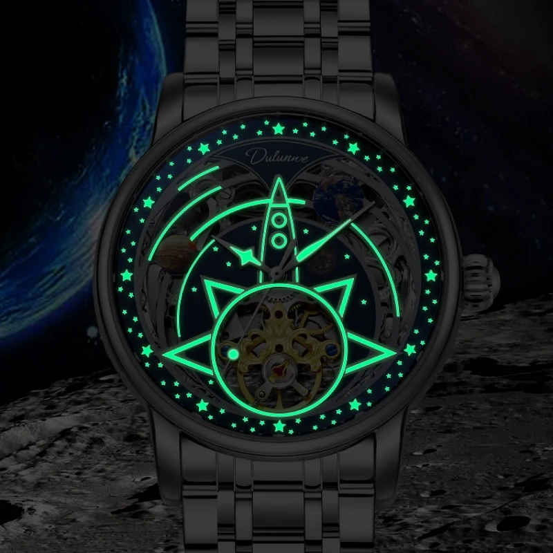 Customized Logo Authentic Fully Automatic Mechanical Watch Hollow Moon Phase Stainless Steel Waterproof Men's Watch