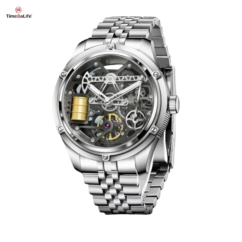 ODM Business Formal Wear Arab Analog Watch Luxury Brand Oil Well Design Automatic Skeleton Mechanical Watch for Men's