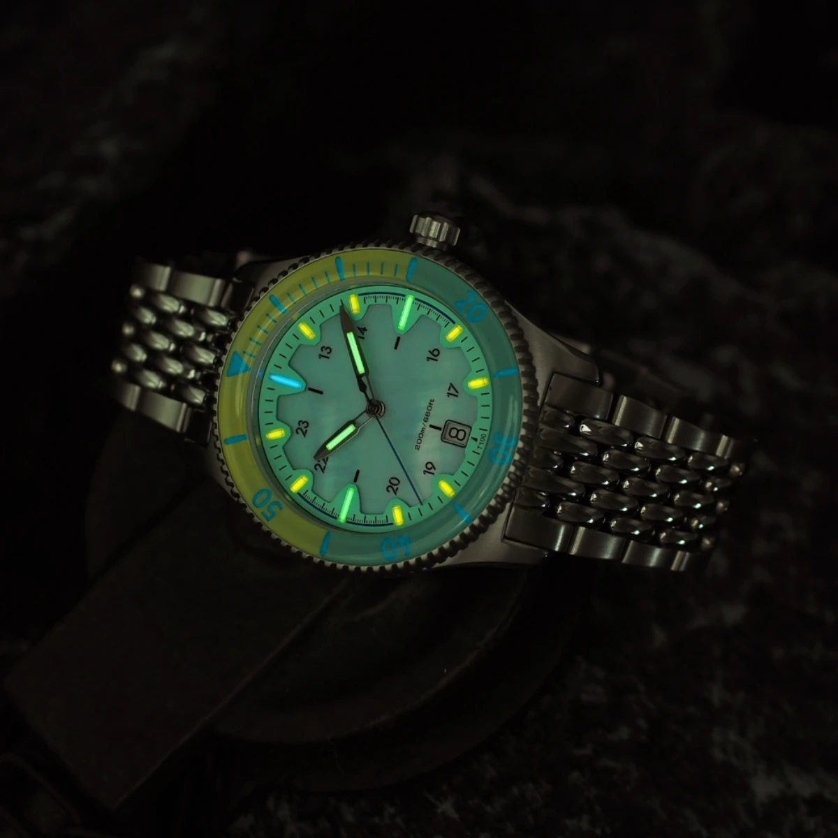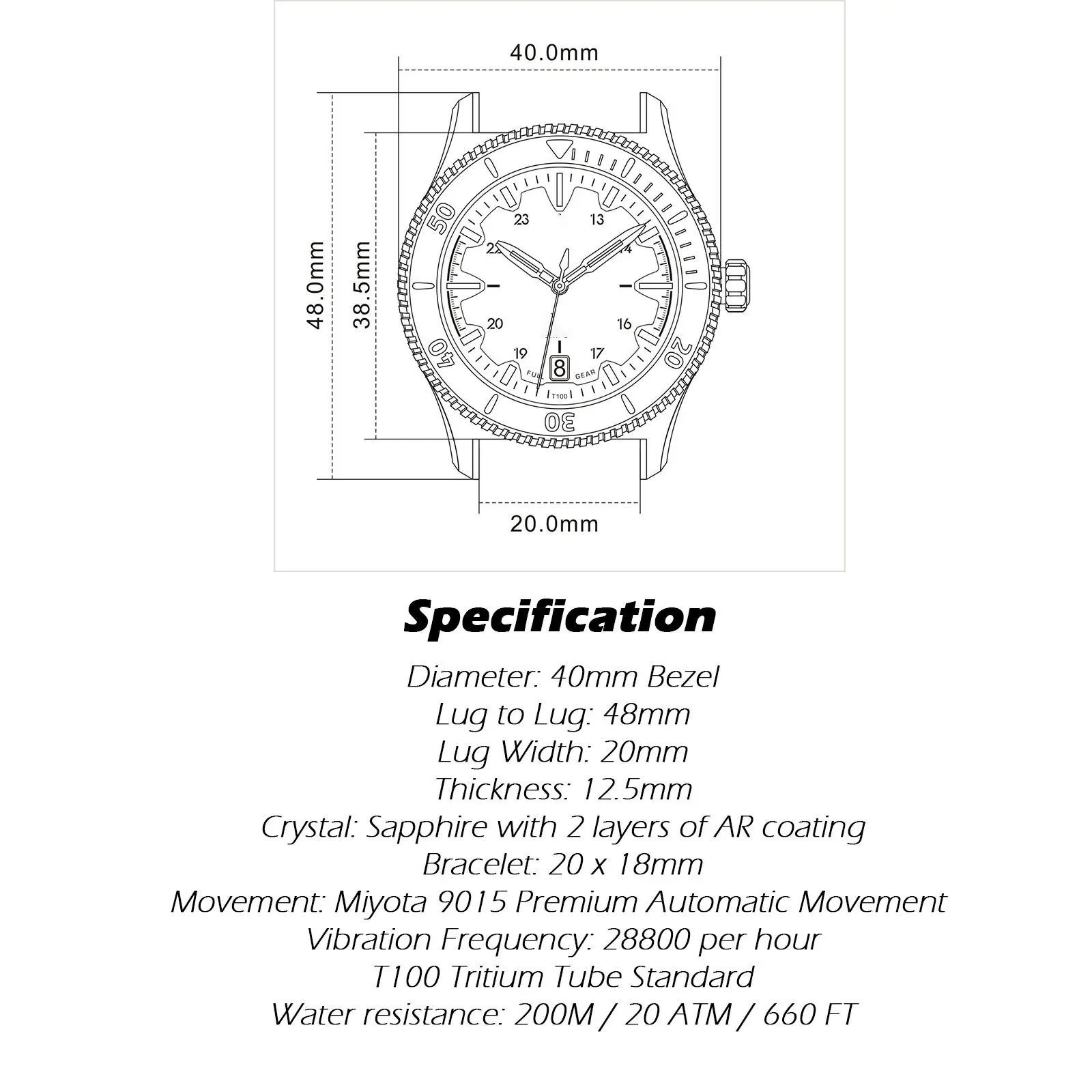 Customized 40MM Design Day Date Automatic Watches Wrist for Men with Tritium (GTLS) Index Hands Powered Miyota 9015 Movement