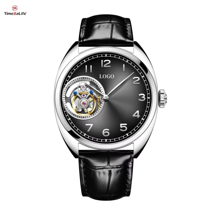 Customized LOGO Leather Tourbillon Watch Blue Gradient Dial Watch Original Tourbillon Movement Mechanical Skeleton Steel Watches