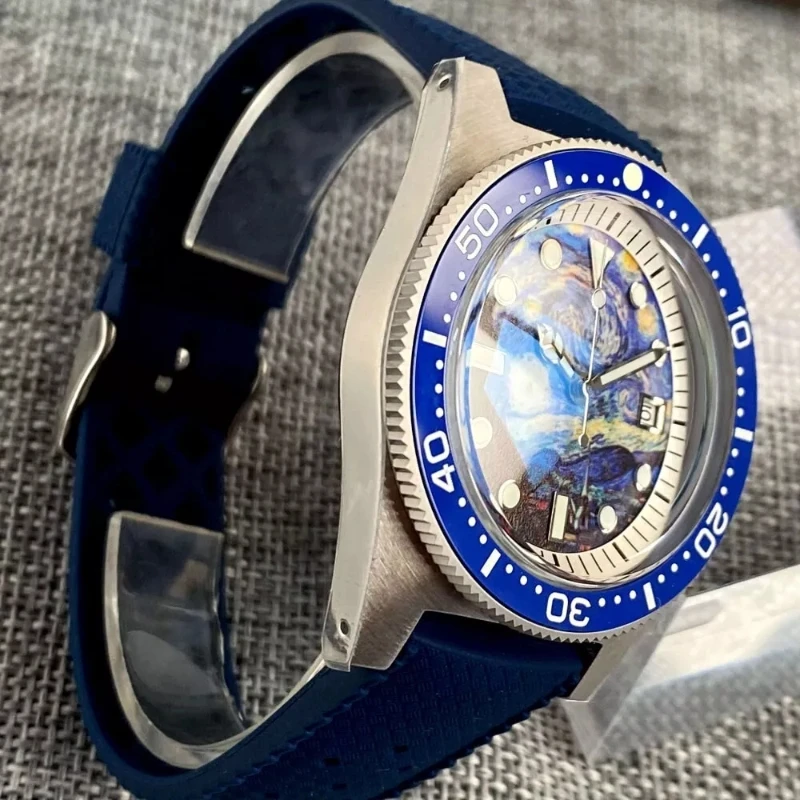 ODM Custom AR Sapphire Glass Full Luminous Kanagawa Surfing Dial 10ATM Diving Mens Watch NH35 Automatic Wristwatch Luminous Dial