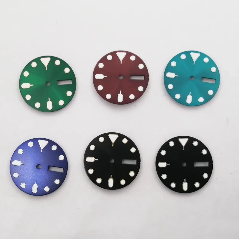 OEM Green Blue Luminous Watch Dial 28.5mm Double Calendar Window for Seiko SKX007 009 NH35/36 4R 6R Movement Watch Accessories