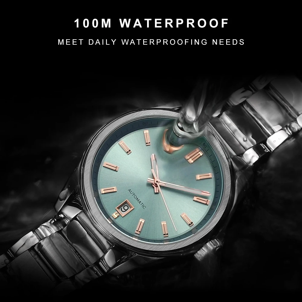 Custom OEM New Luminous Men Luxury Automatic Mechanical Watches NH35A Sapphire Stainless Steel 10Bar Clock Blue Watch for Men