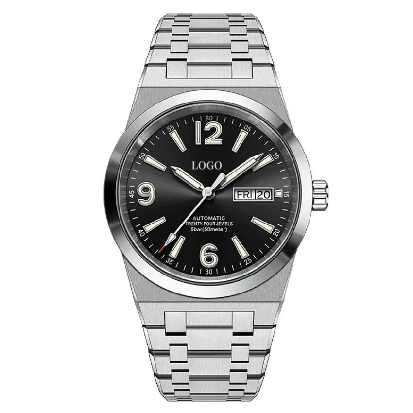 OEM Polygonal Cutting Business Watch Design Custom LOGO Japan NH36 Movement Automatic Mechanical Men Watch with Day Display