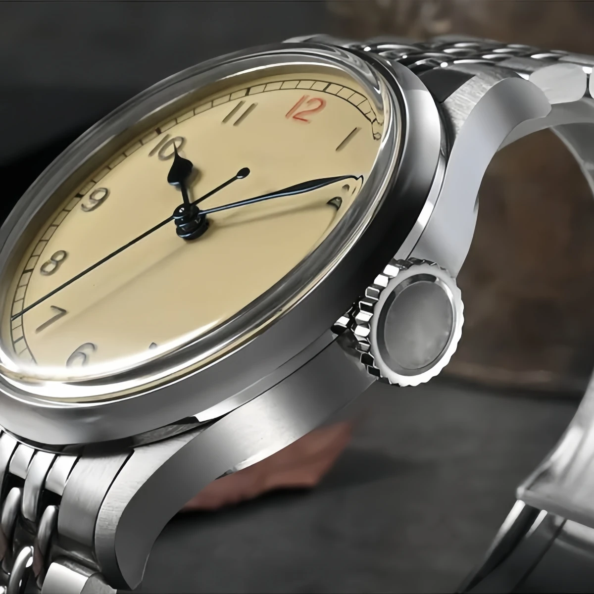 OEM Custom Logo Vintage Pilot Men Watches NH35 Simple Light Yellow Stainless Steel Automatic Mechanical Dress Wristwatch