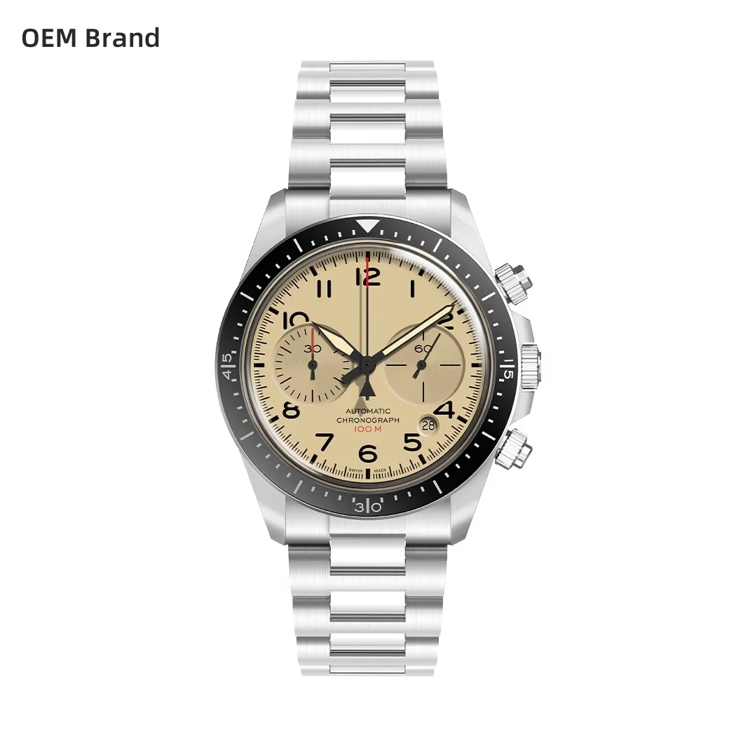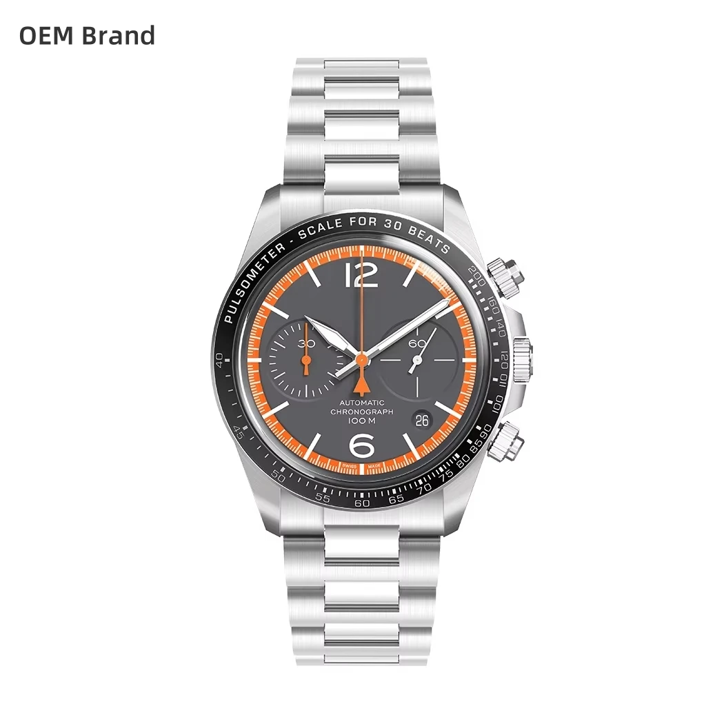 OEM/ODM Available New Design Luxury 316L Stainless Steel Chronograph Automatic Mechanical Watch for Men with Calendar