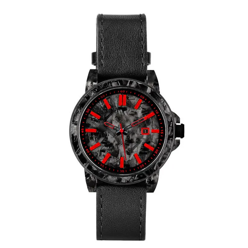 OEM Custom Logo Leather Strap NH35 Mechanical Watches 100M Waterproof Automatic Watch With Carbon Fiber Case
