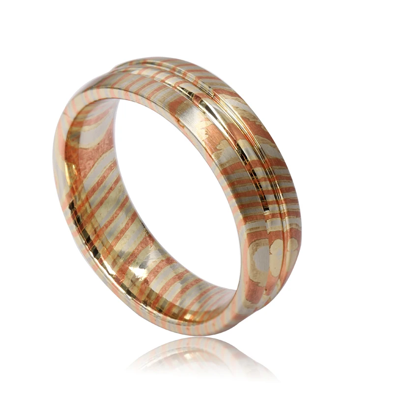 Dome 8mm Men Wedding Band Brushed Jewelry Ring Men Natural Copper Brass Color Mokume Gane TIZTI Ring