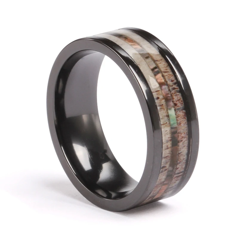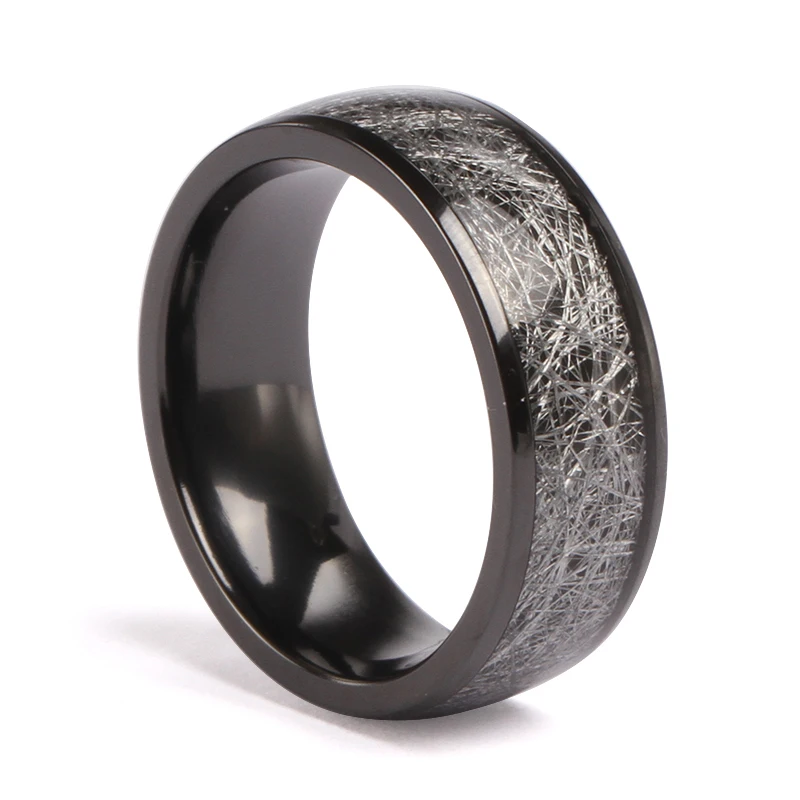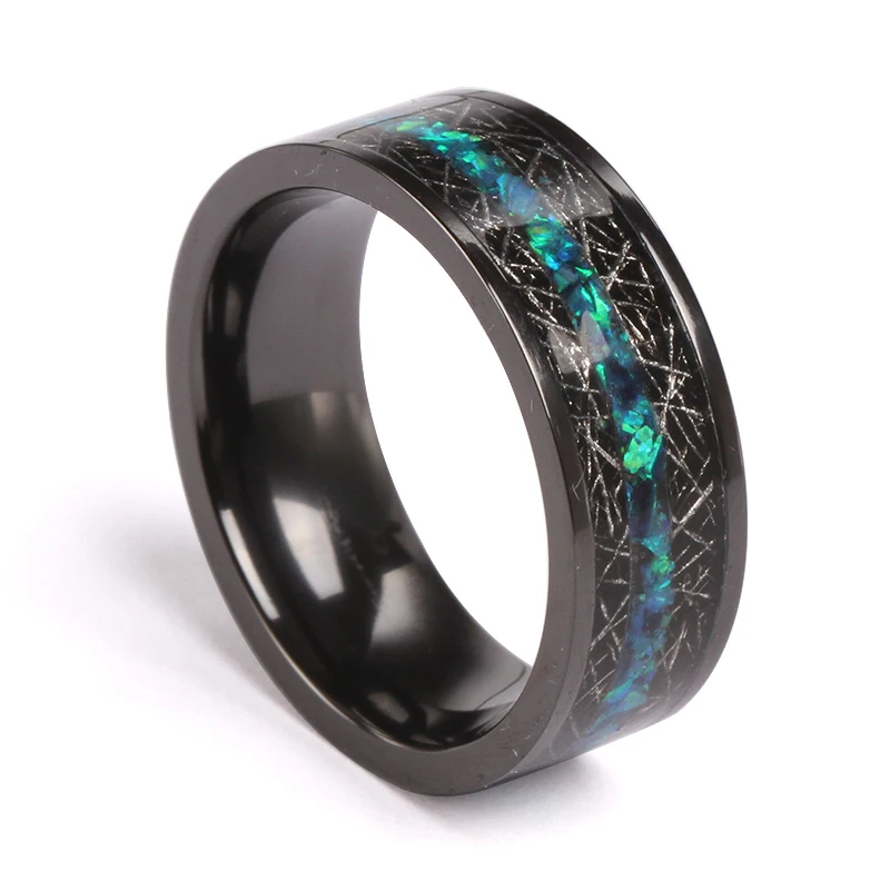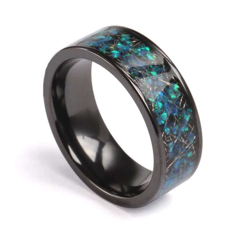 Tizti Jewelry Black Color High Polished Crushed Green Blue Opal Inlay Black Ring Tungsten Titanium Zirconium Mens Wedding Bands