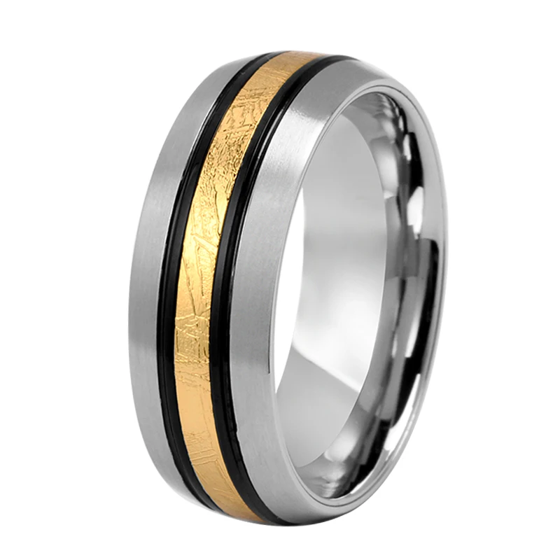 Tizti Jewelry 8mm Bricks Real Meteorite Ring Titanium Stainless Steel Zirconium Mens Wedding Band Meteorite Rings