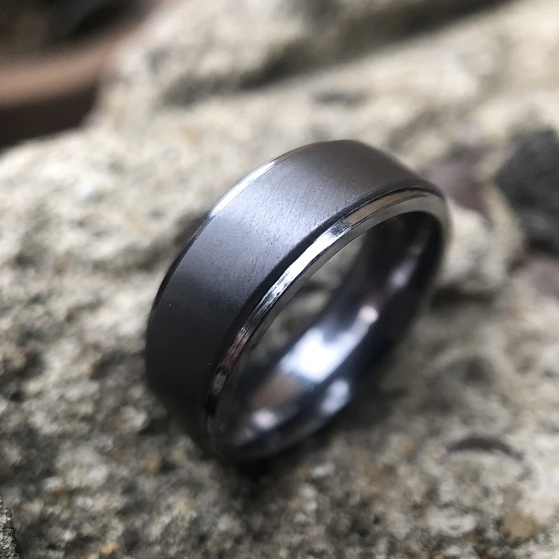 Tizti Jewelry Hot Sale Minimalist Stepped Edges Pure Tantalum Ring Mens Wedding Bands Satin Tantalum Rings