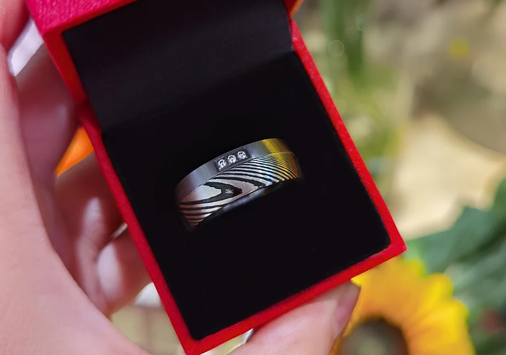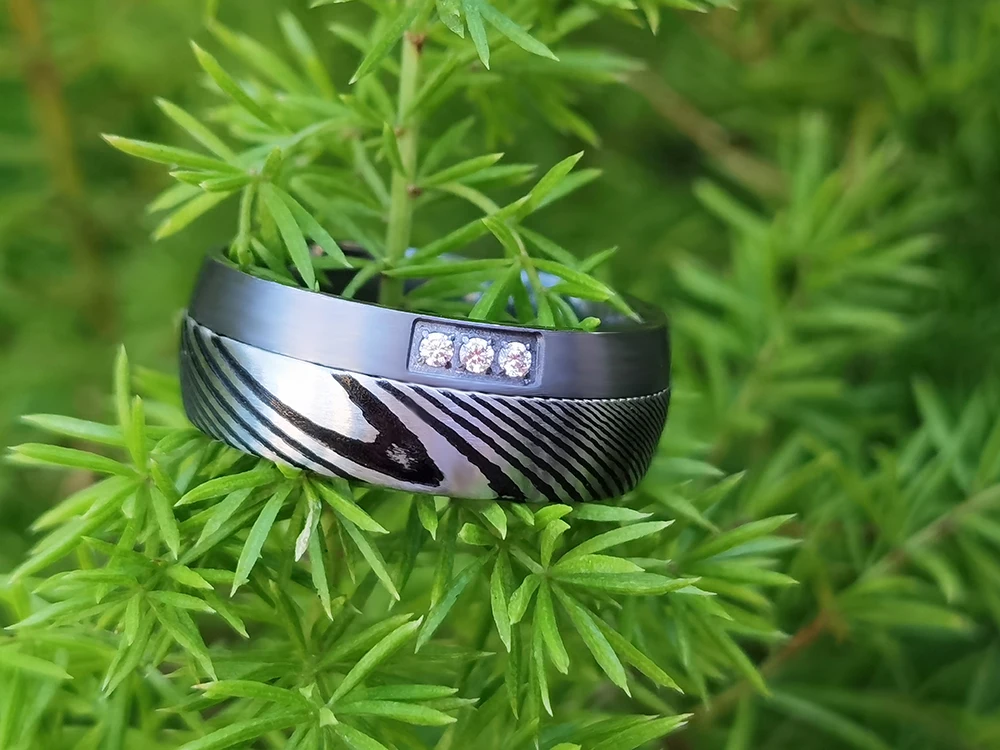 Tizti Fashion Jewelry for Men Hand Crafted Damascus Steel Men Wedding Band CZ Custom Design Tantalum Rings