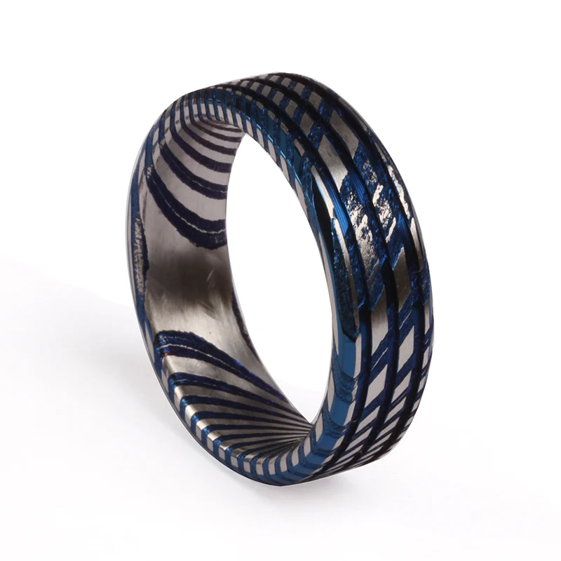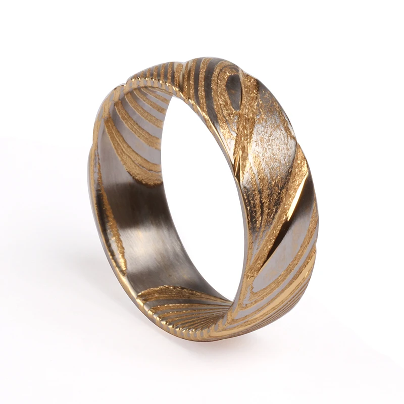 Newest Wholesale Mens Gold Damascus Steel Ring Etching Mens Wedding Bands
