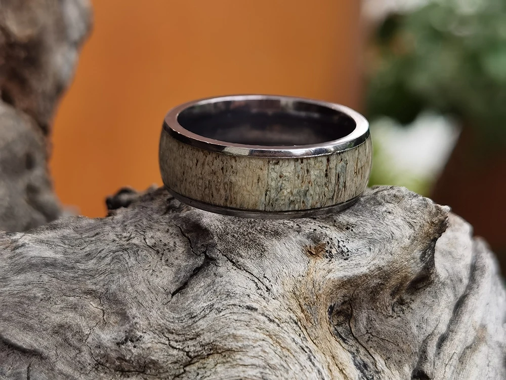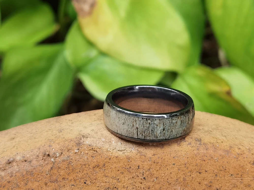 Tizti Tantalum Jewelry Ring 99.99% Pure Tantalum Ring Inlaid Natural Antler Men Tantalum Wedding Rings