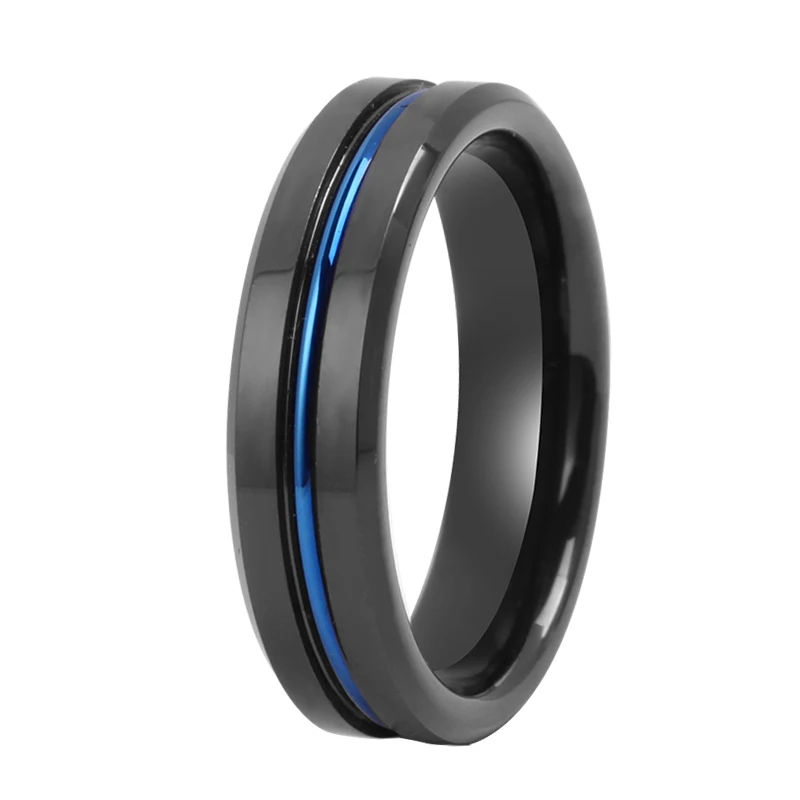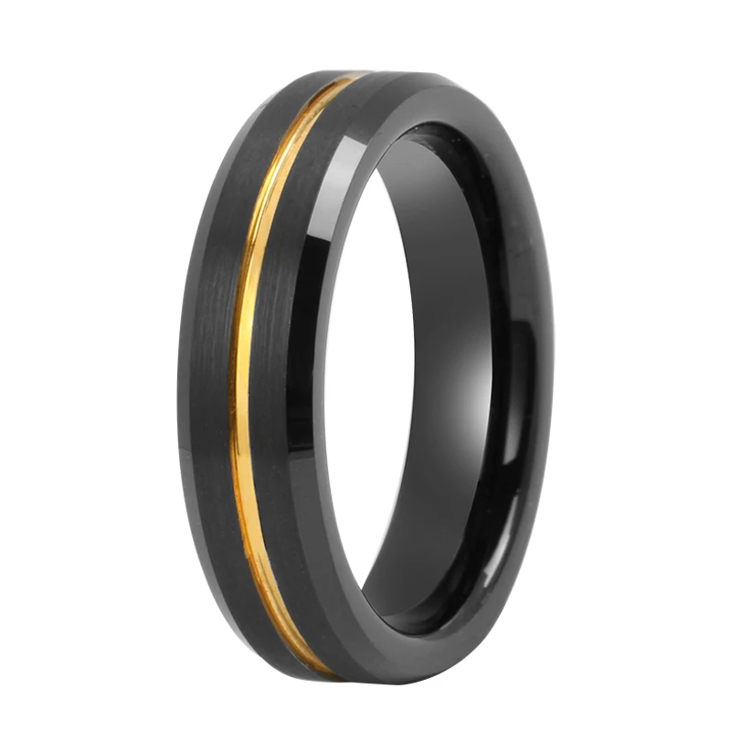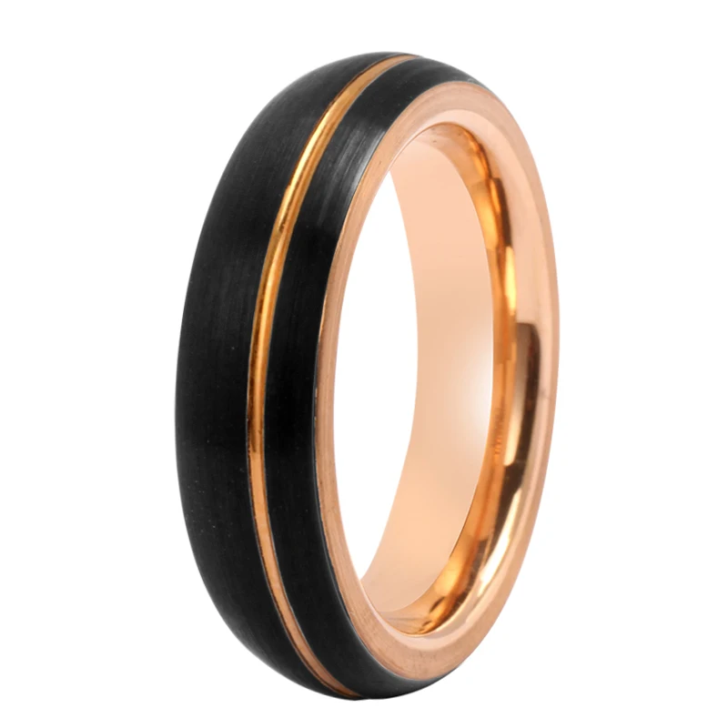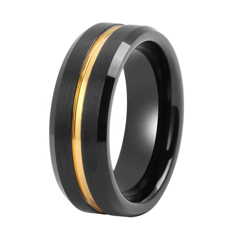 Tizti Tungsten Jewelry Manufacturer 8mm Inset Center Line Two Tone Brushed Finish Black Tungsten Ring for Men and Women
