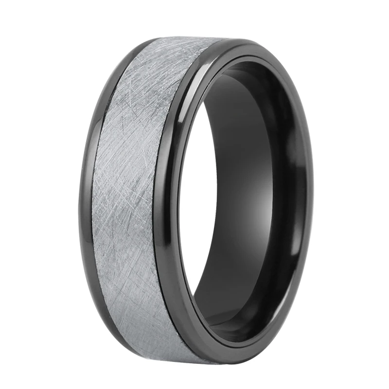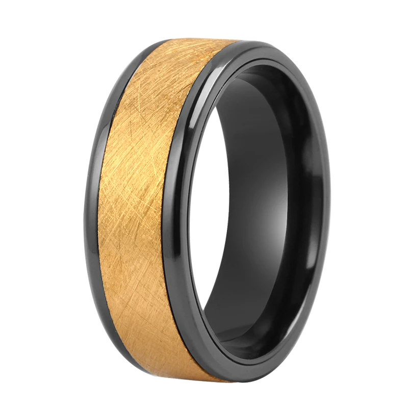 Tizti 8mm Distressed Brush Gold Black Tungsten Titanium Alloy Ring Wholesale Fashional Black Zirconium Wedding Ring for Men