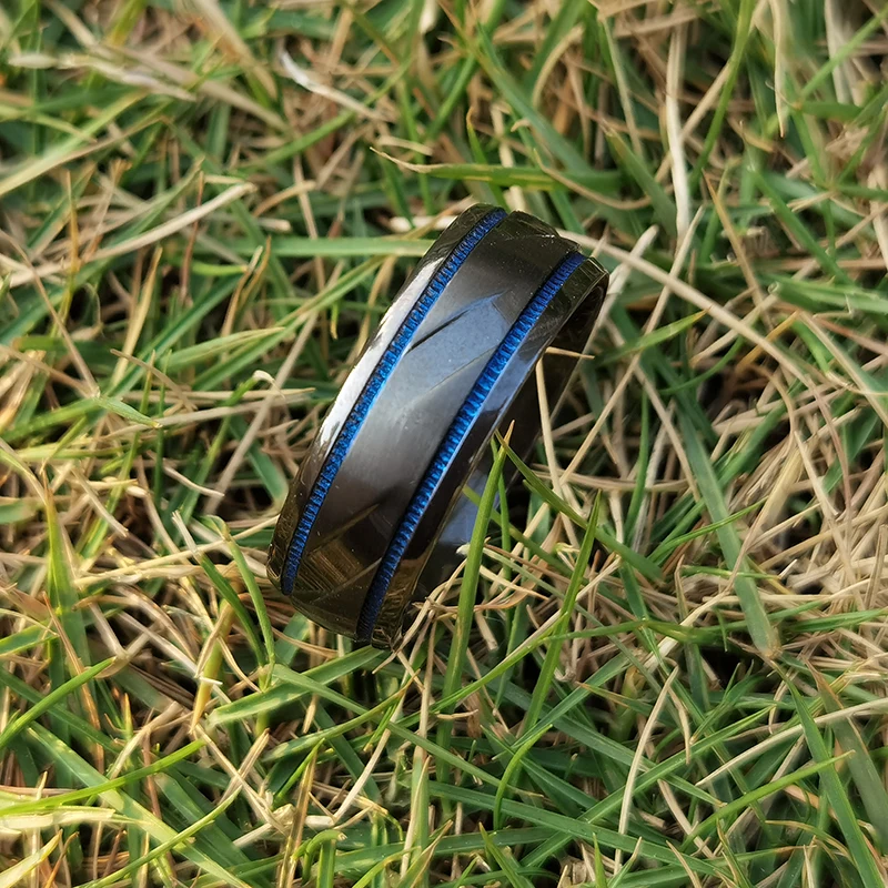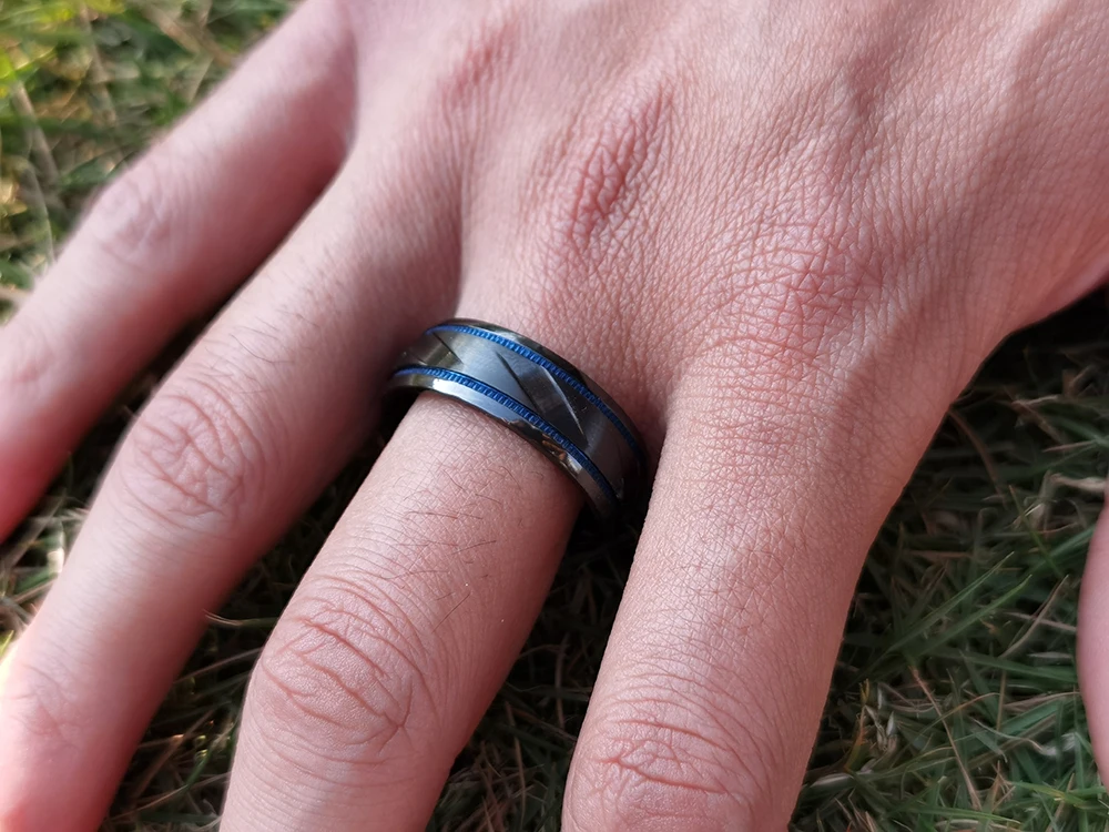 Tizti 8mm Fashion Mens Jewelry Rings Brushed Engagement Wedding Band Tungsten Carbide Blue Black Zirconium Ring