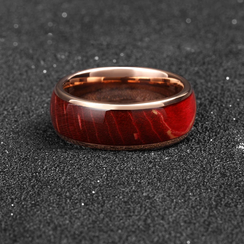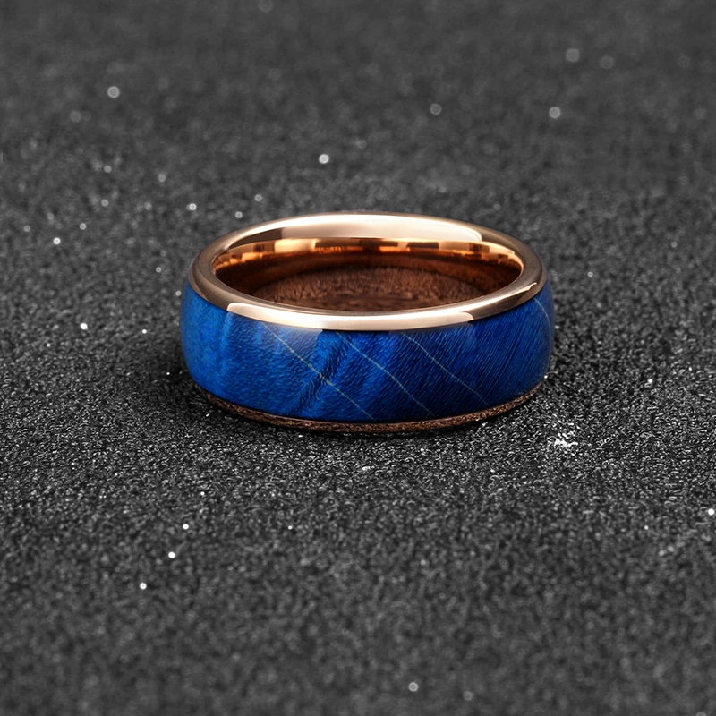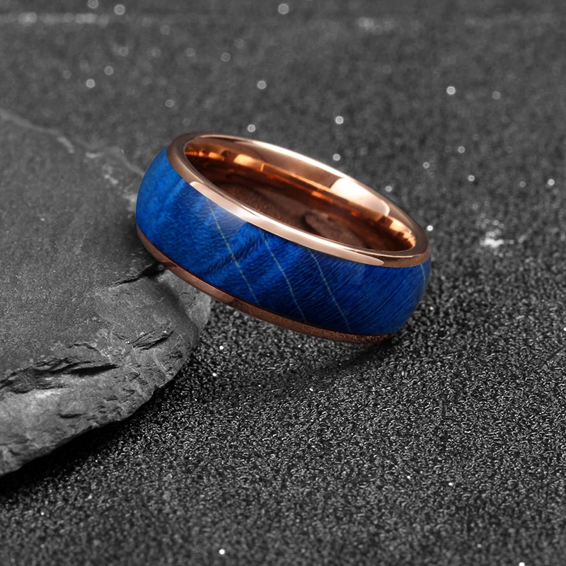 8mm Dome Blue Red Box Elder Wood Tungsten Ring Mens Jewelry Rings Wedding Band