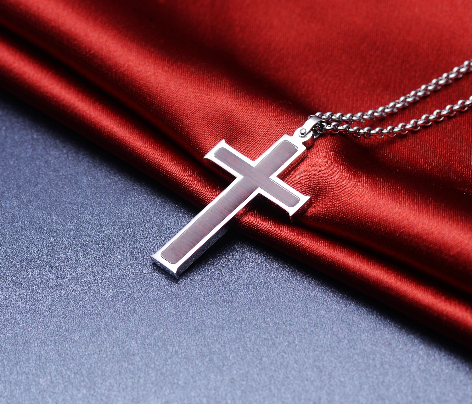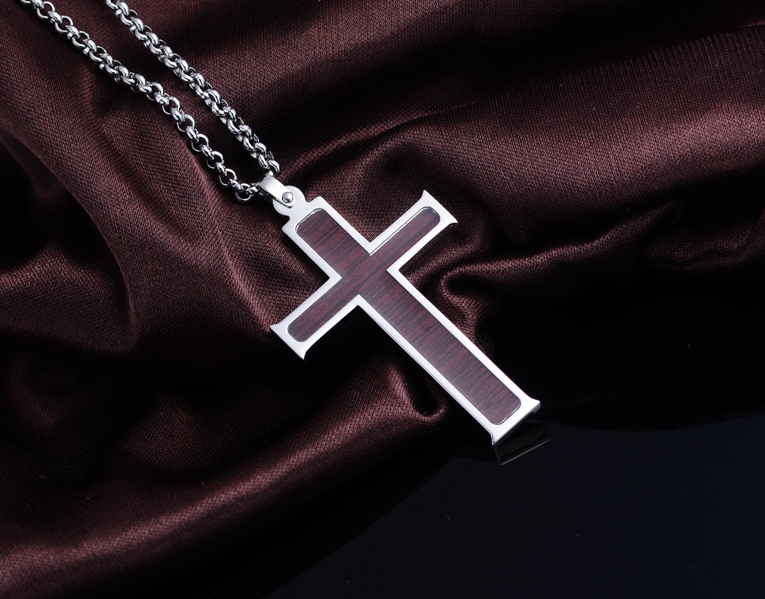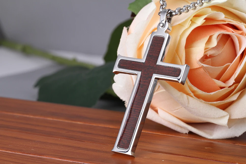 Fashion Accessories Silver Stainless Steel Wooden Cross Pendant