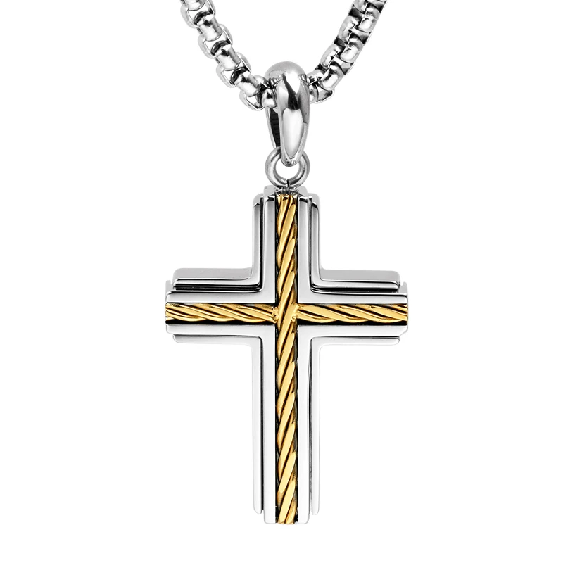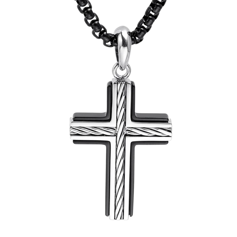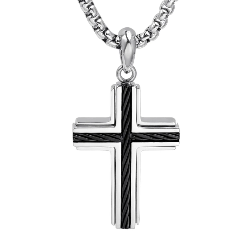 Tizti Unisex Classic Style Mens Women 18k Silver Gold Black Plated Stainless Steel Pendant Cross Necklace