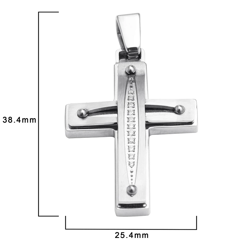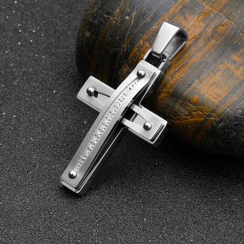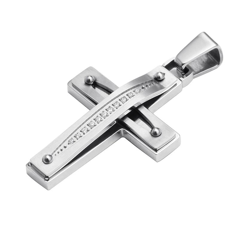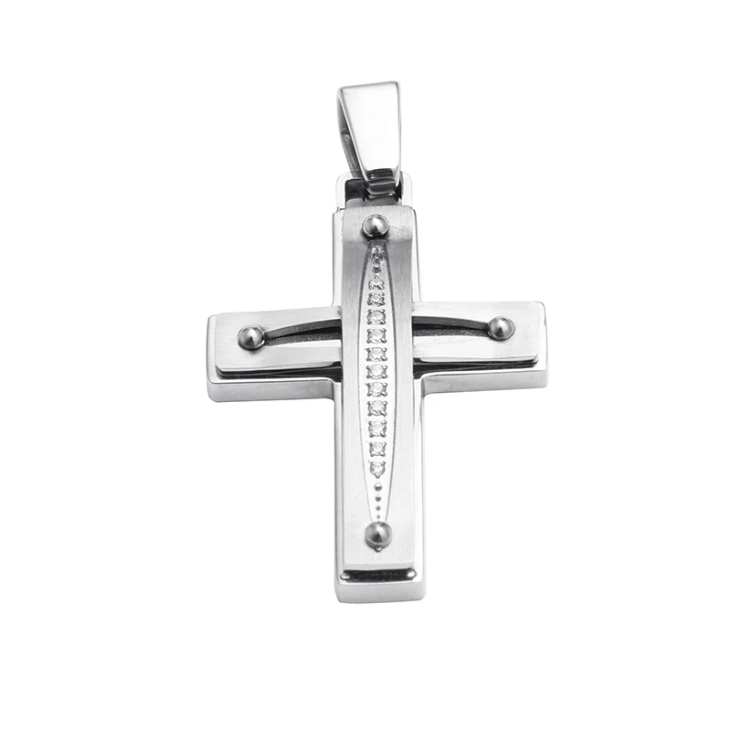 Tizti Christian Religious Custom Logo CZ Stones Stainless Steel Cross Pendant Necklace Pendant