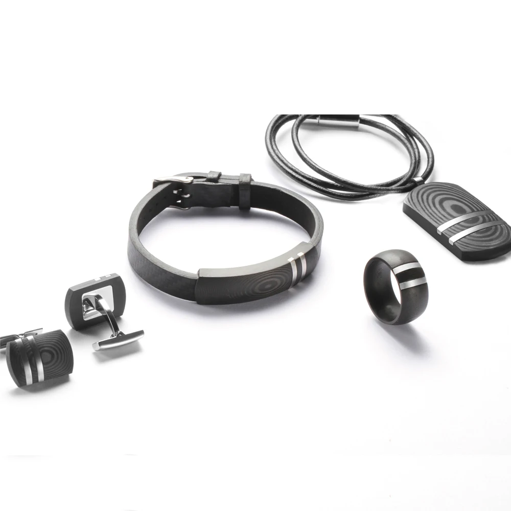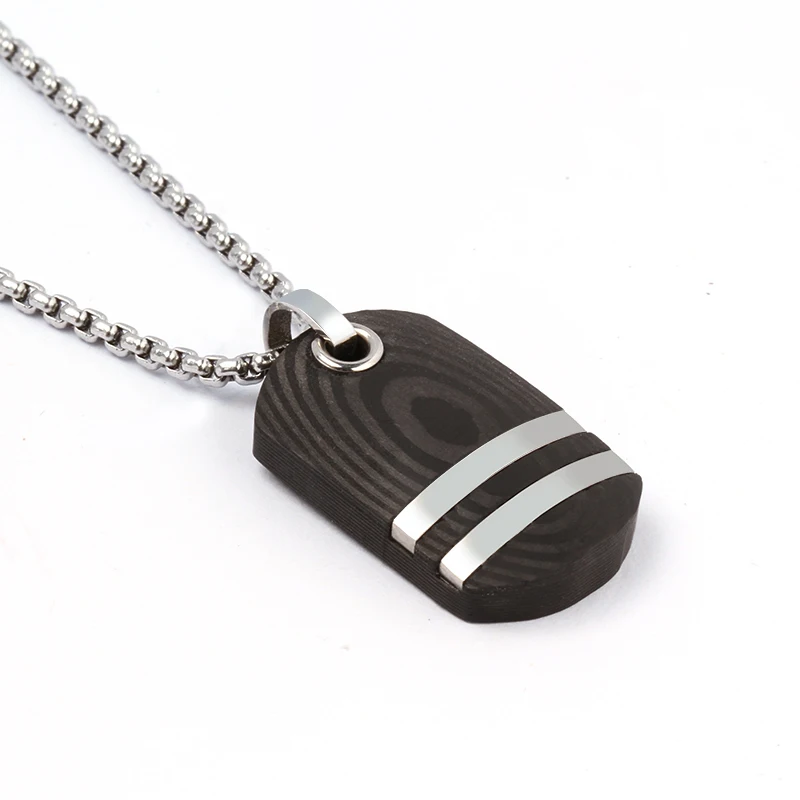 Lightweight and Durable Wood Textured Carbon Fiber with Steel Inlay Jewelry Men Necklace Pendant
