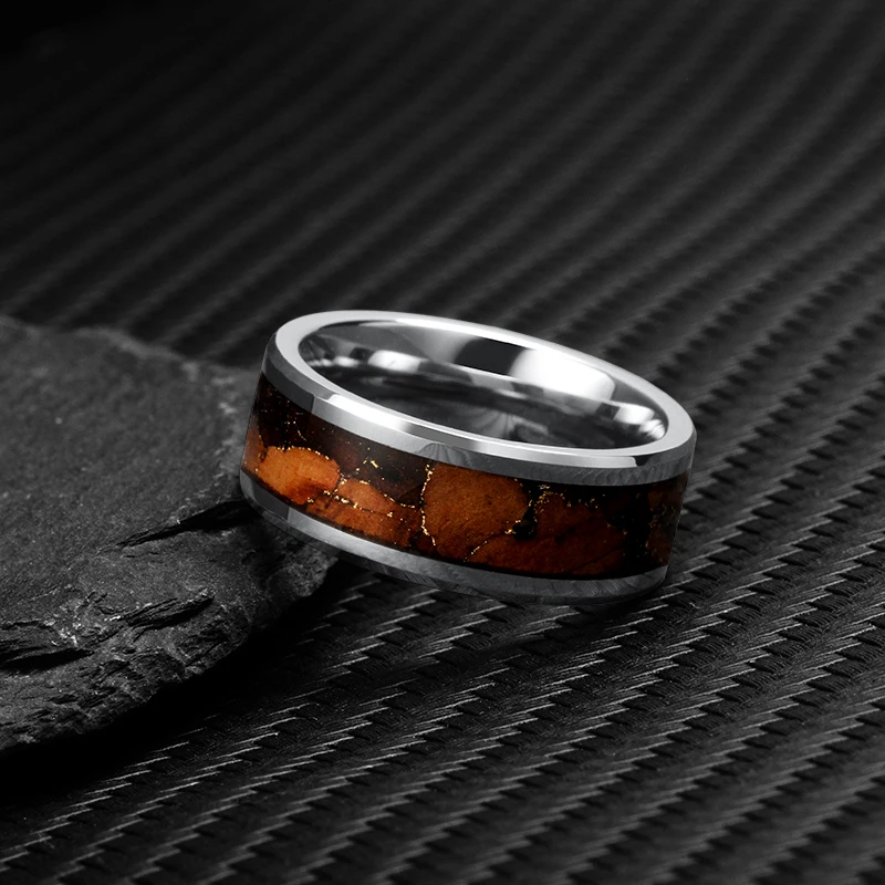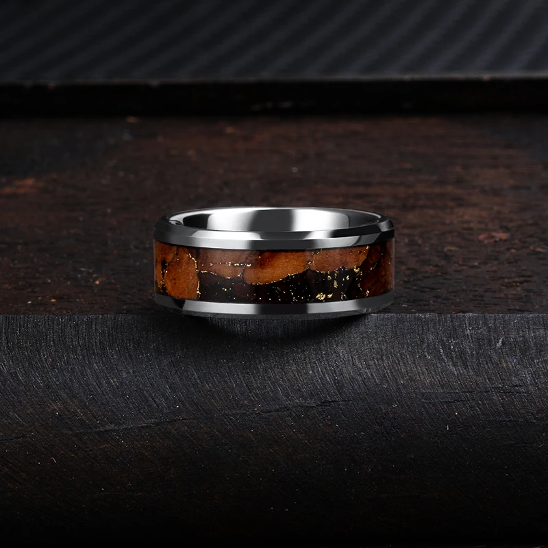 Tizti 8mm Gold Foil Inlay Wood Titanium Mens Weeding Band Stainless Steel Ring Tungsten Carbide Rings for Men Women