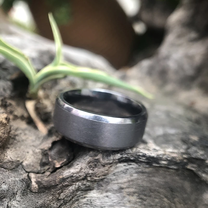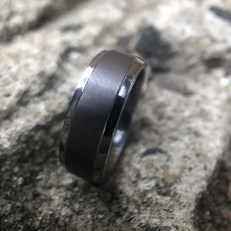 Men Rings Jewelry 8mm Brushed with Polished Bevels Custom Tantalum Mens Wedding Band