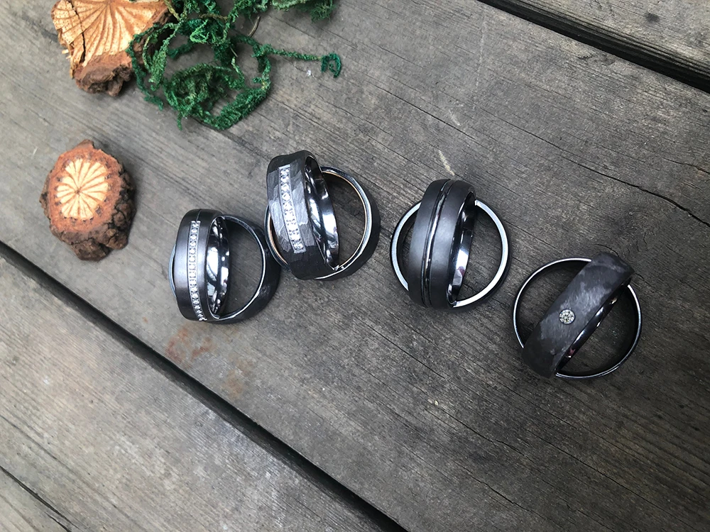 Excellent Quality Design & Workmanship 3 Stone CZ Prong-Set Mix Brushed Grey Pure Tantalum Ring for Men