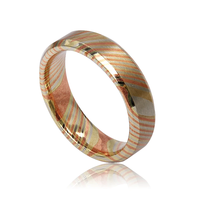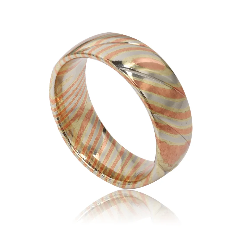 8mm Dome Brass Ring for Man Polished Carved Mokume Gane Bands