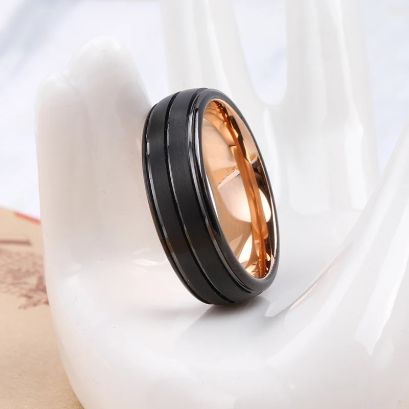 7MM Mens Jewelry Manufacturers High Quality Rings Black &Rose Gold Tungsten Carbide Wedding Rings