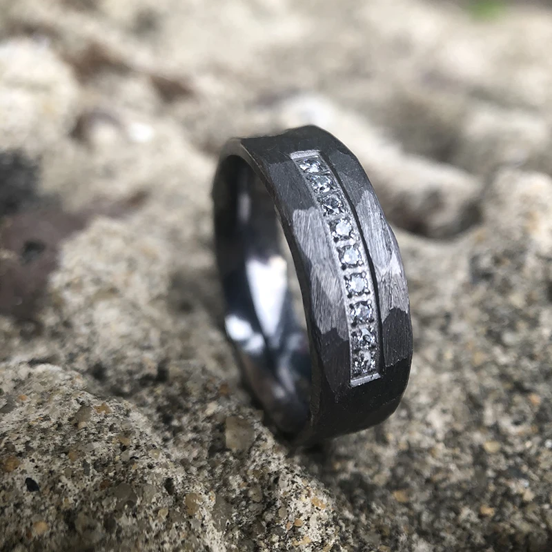 Natural Grey 8mm Custom Handmade Hammered Pure Tantalum Rings