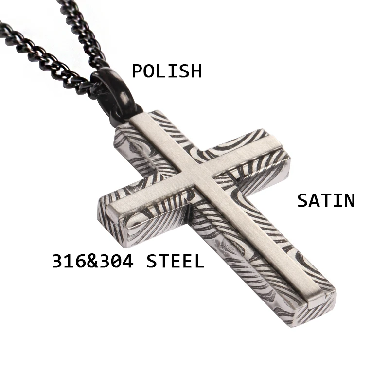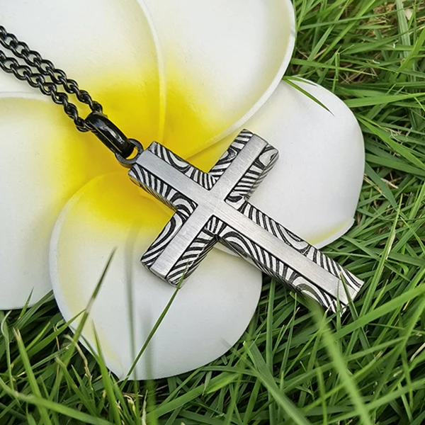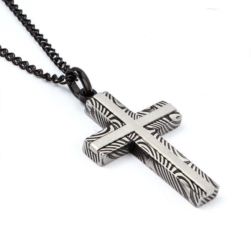 Tizti Fashion Men's Jewelry High Quality Vintage Customized Damascus Christian Stainless Steel Cross Pendant Necklace