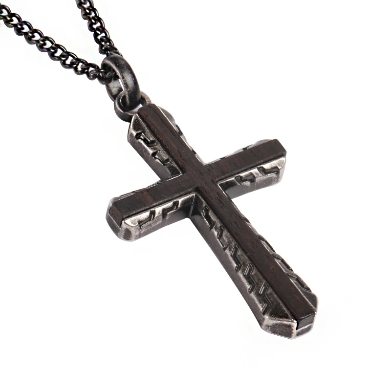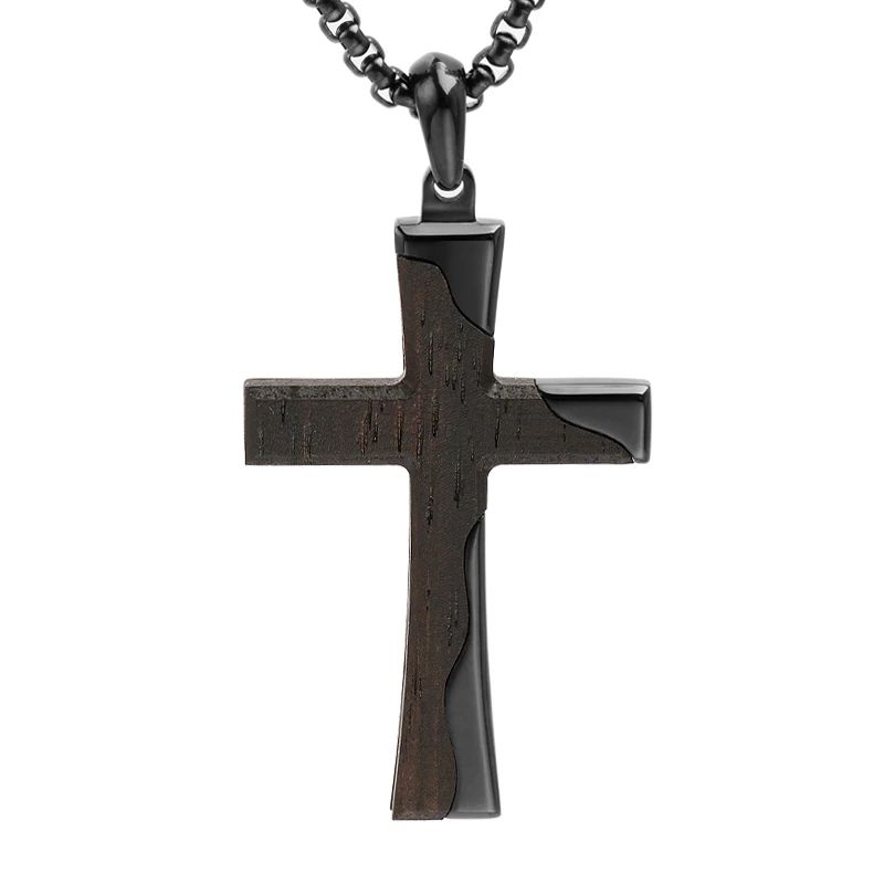 Wood Inlay Christian Classic Cross Pendant Necklace 18K Gold Plated Stainless Steel Wood Cross Pendant