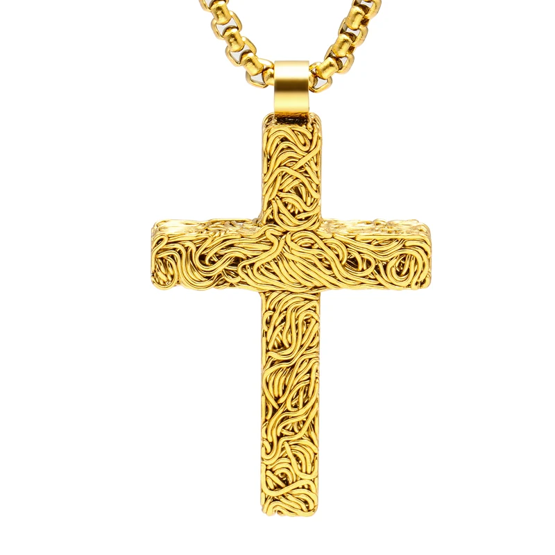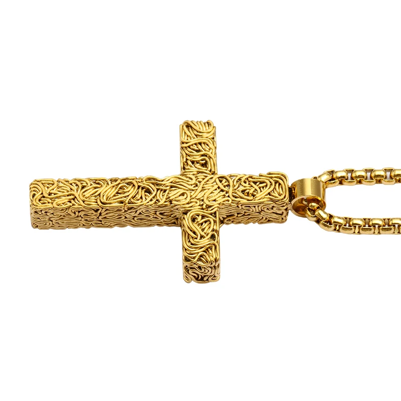 Fashionable Personalized Religious Jewelry with Chain Men's Gold Plated Stainless Steel Cross Pendant