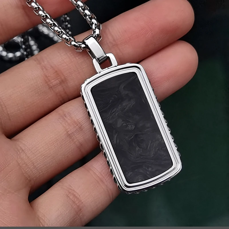 Jewelry Gift for Him Forged Carbon Fiber Stainless Steel Pendant with Chain Men's Carbon Fiber Dogtag Necklace