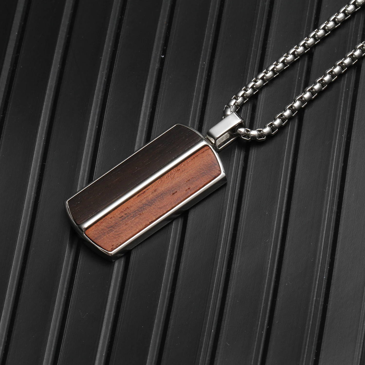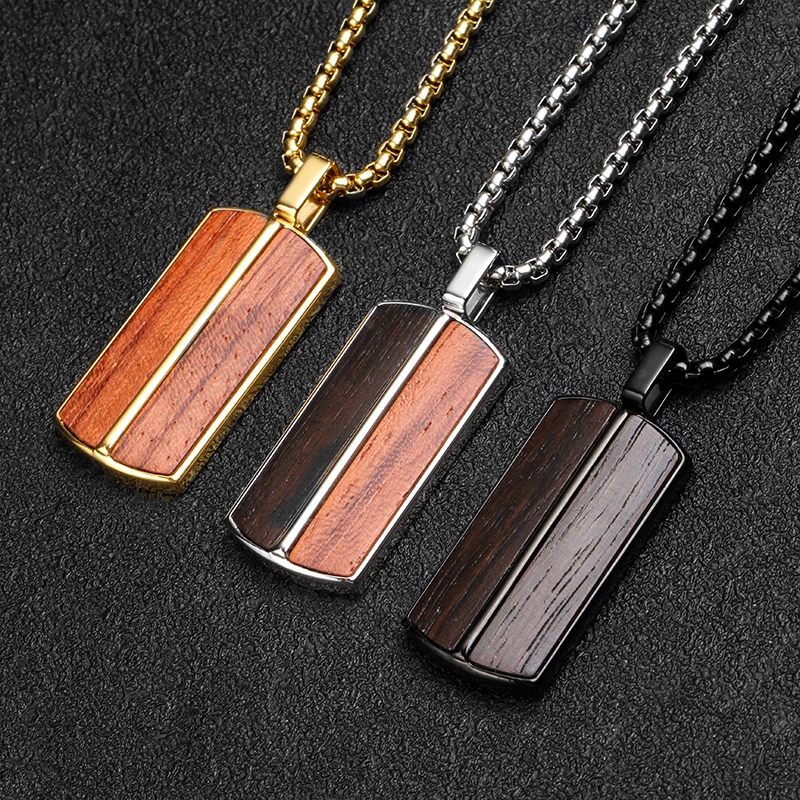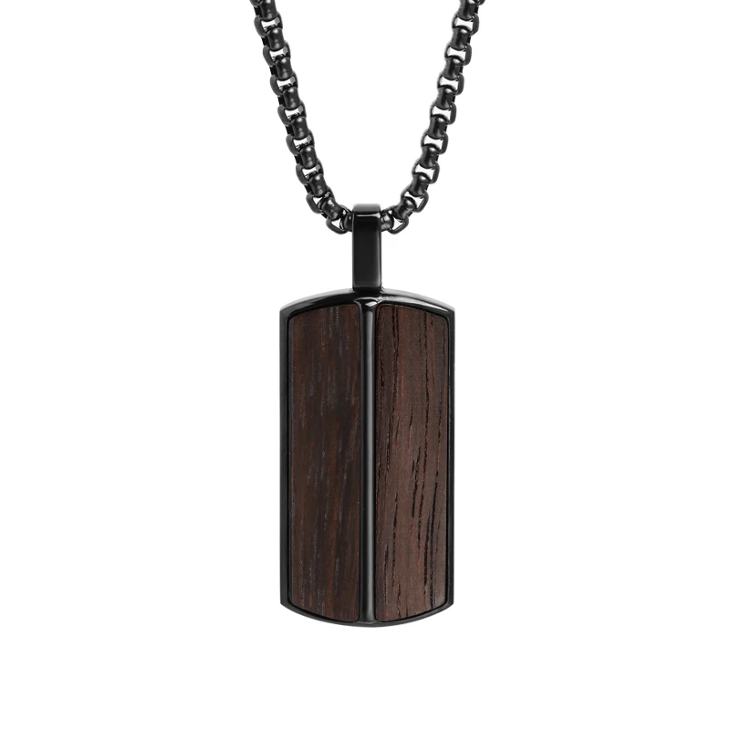Tizti Jewelry Mixed Bubinga Ebony Wooden Men's Fashion Two Tone Pendant Jewelry 316 Stainless Steel Wood Pendant