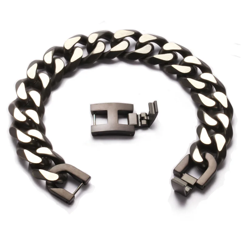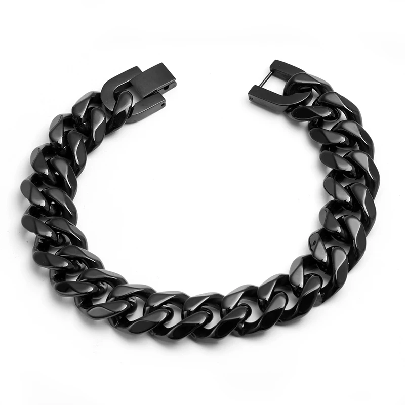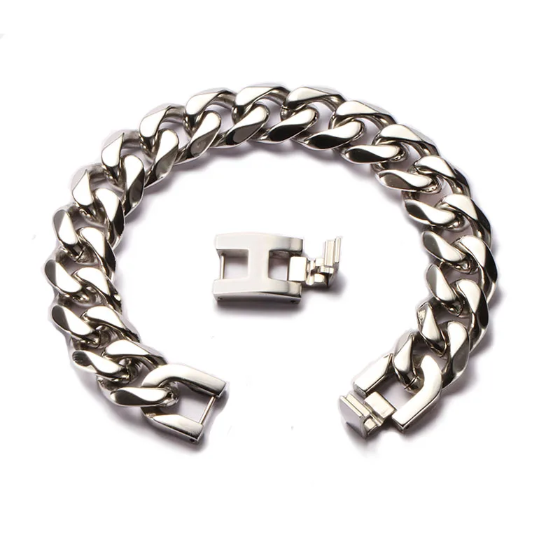 Men's 15mm Heavy Solid Stainless Steel Cuban Link Chain Bracelet 8'' Silver Polished Hip Hop Mens Fashion Accessory