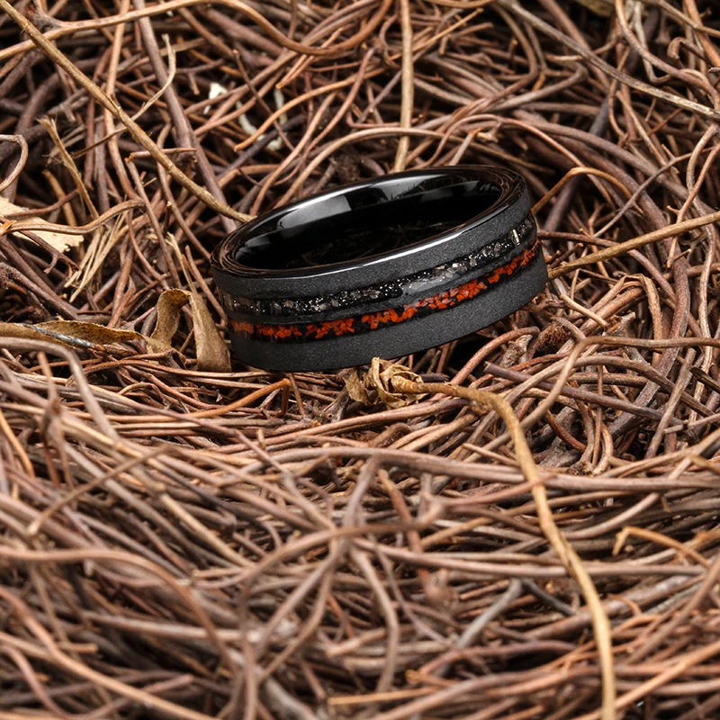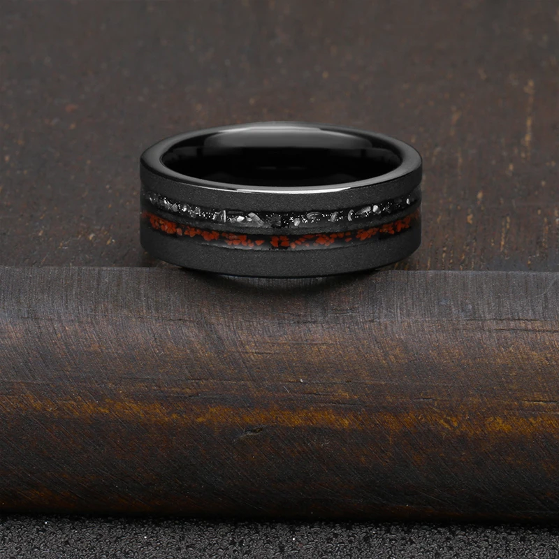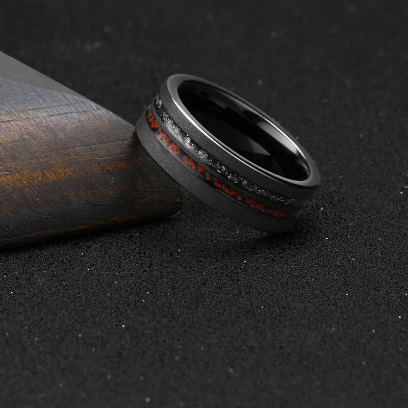 Tizti Jewelry 8mm Sandblasted Tungsten Wedding Band Comfort Fit Meteorite Dinosaur Bones Inlay Trendy Engagement Rings for Men