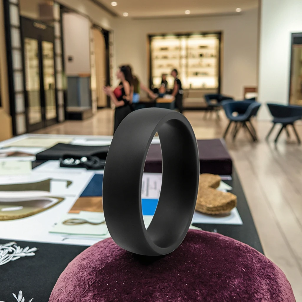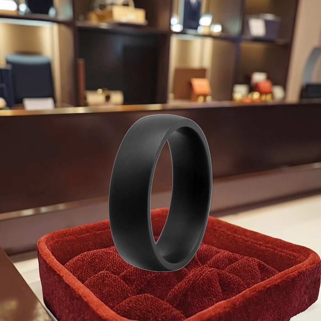 Tizti Comfort Fit Men's 6.5mm Dome Tantalum Band Satin Finish Black Alternative Metal Fashion Jewelry for Weddings Engagements