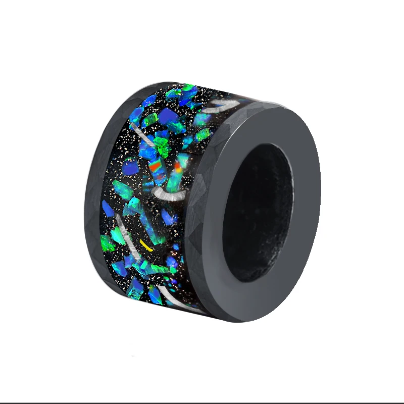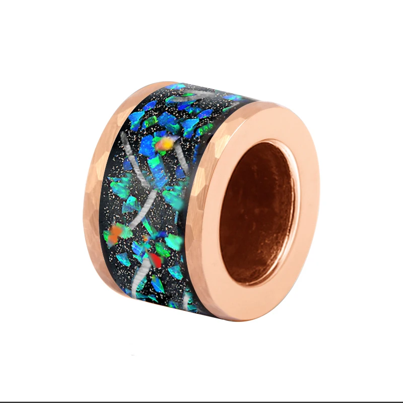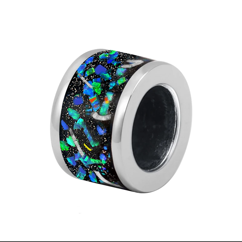 Gold-Plated 9mm High-Polished 316L Stainless Steel Bead with Green Opal Meteorite Chip Inlay for Wedding Charm