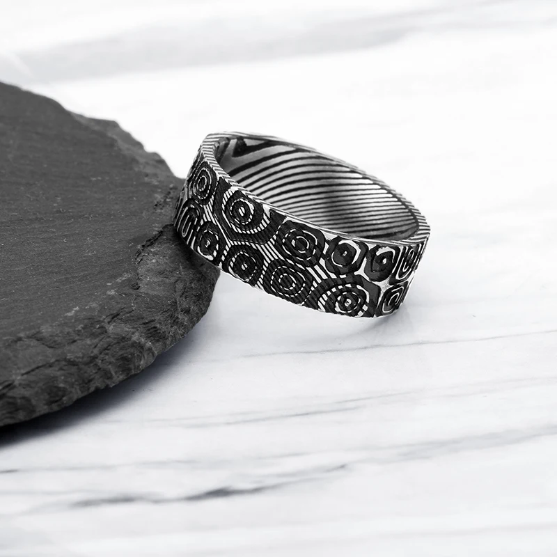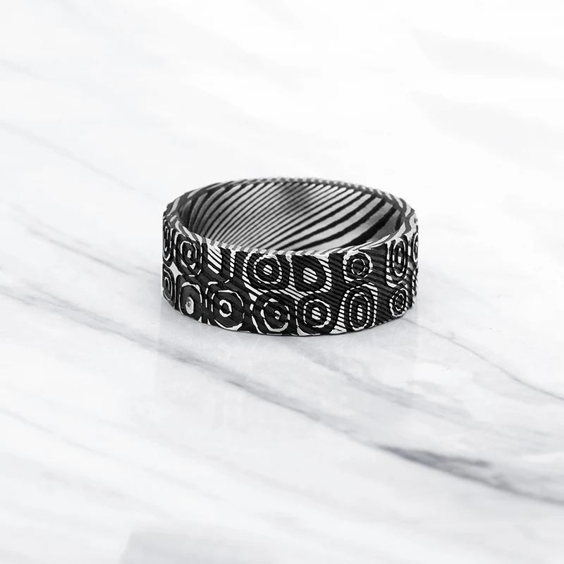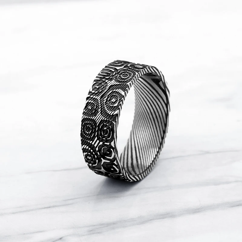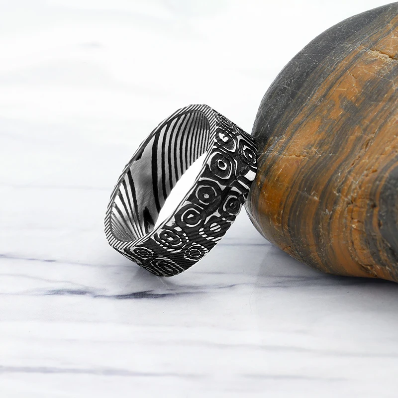 Classic Antique Style Damascus Steel Ring Men's Wedding Band for Engagement and Party IP Black Gift for Him Damascus Ring