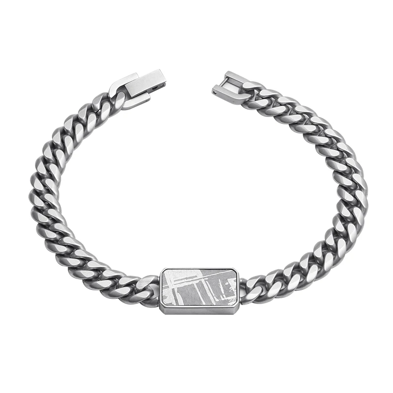 Stylish Classic 8mm Stainless Steel Bracelet for Men Sandblasted Meteorite Inlay for Gift Cuban Chain & Link Jewelry