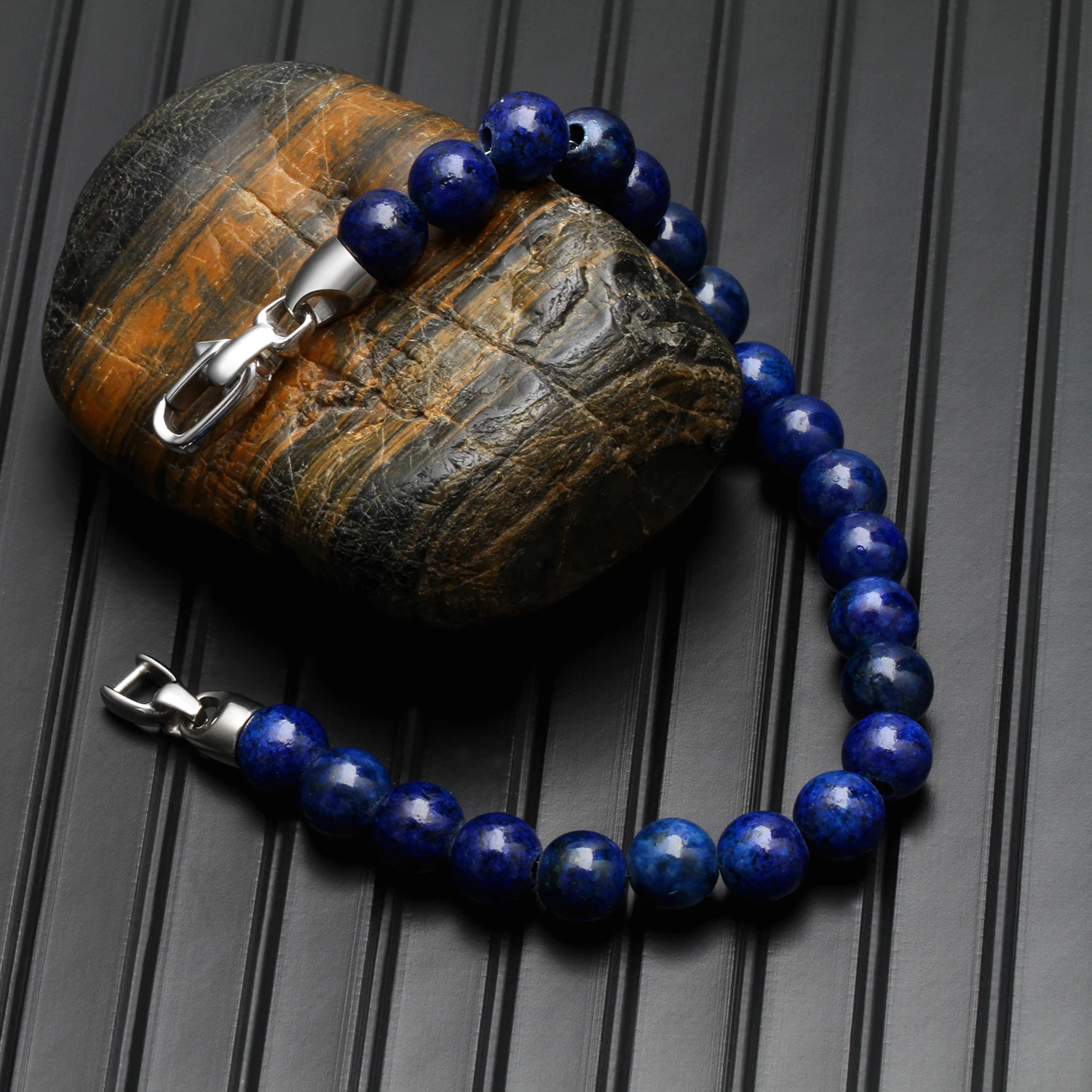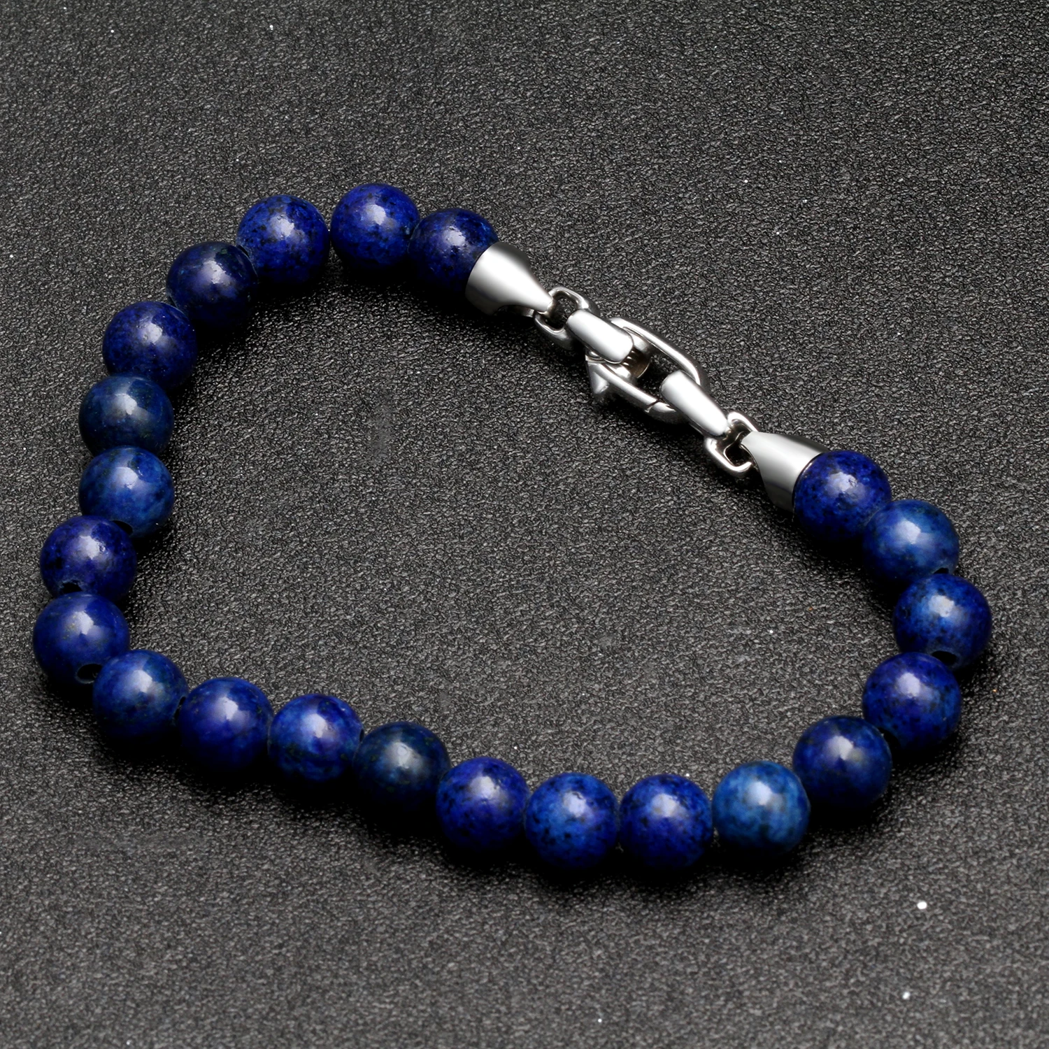 Tizti Trendy 6MM 8MM Natural Stone Lapis Lazuli Beaded Bracelet for Men Jewelry with Stainless Steel Chain Personalized Bracelet